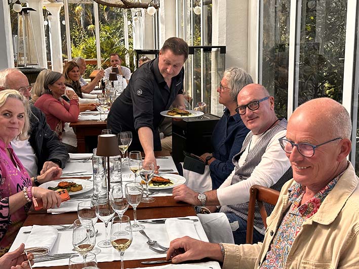 Doch zurück zu unserem IbizaHEUTE-Feinschmecker-Treff, genauer gesagt Gourmet-Event. Rund 50 Gäste konnten Wolfgang Kettner und Dieter Abholte von IbizaHEUTE begrüßen. Es waren „alte Bekannte“, waren Freunde, die oft kommen, wenn sie auf der Insel sind – aber auch eine Reihe von neuen Gästen, die zum ersten Mal dabei waren und beim Abschied sagten: „Wir sind jetzt gerne immer dabei. So toll haben wir uns das nicht vorgestellt. Hier stimmt wirklich alles. Und neue nette Leute haben wir auch kennengelernt – und uns schon verabredet.“ Danke für das Kompliment. Und das Kennenlernen ist für uns ein wichtiger Aspekt unserer Gourmet-Treffen.