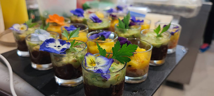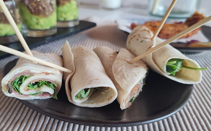 Und dieses Verwöhnen ist so breit gefächert, wie seine Tapas. Er kocht, wenn man einen romantischen italienischen Abend zu zweit haben möchte, genauso, wenn er 6, 8 oder 30 Leute „bekochen“ möchte. Dabei können es leckere Tapas in Tontöpfchen sein, die er schon so vorbereitet mitbringt, dass sie nur noch zum Erwärmen in den Ofen geschoben werden müssen, oder Alessandro zaubert bei den Gästen zu Hause ein italienisch-mediterranes Menü. „Dafür kann ich alles übernehmen: einkaufen, kochen, den Tisch schön decken, servieren“, sagt er. Und die passenden Weine zu den Tapas oder dem Menü besorgt er auch. Natürlich alles nach den Wünschen seiner Kunden.
